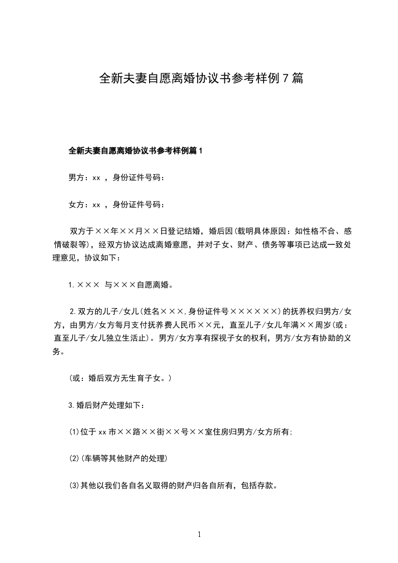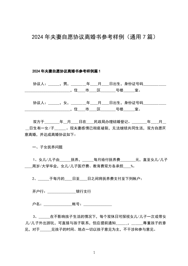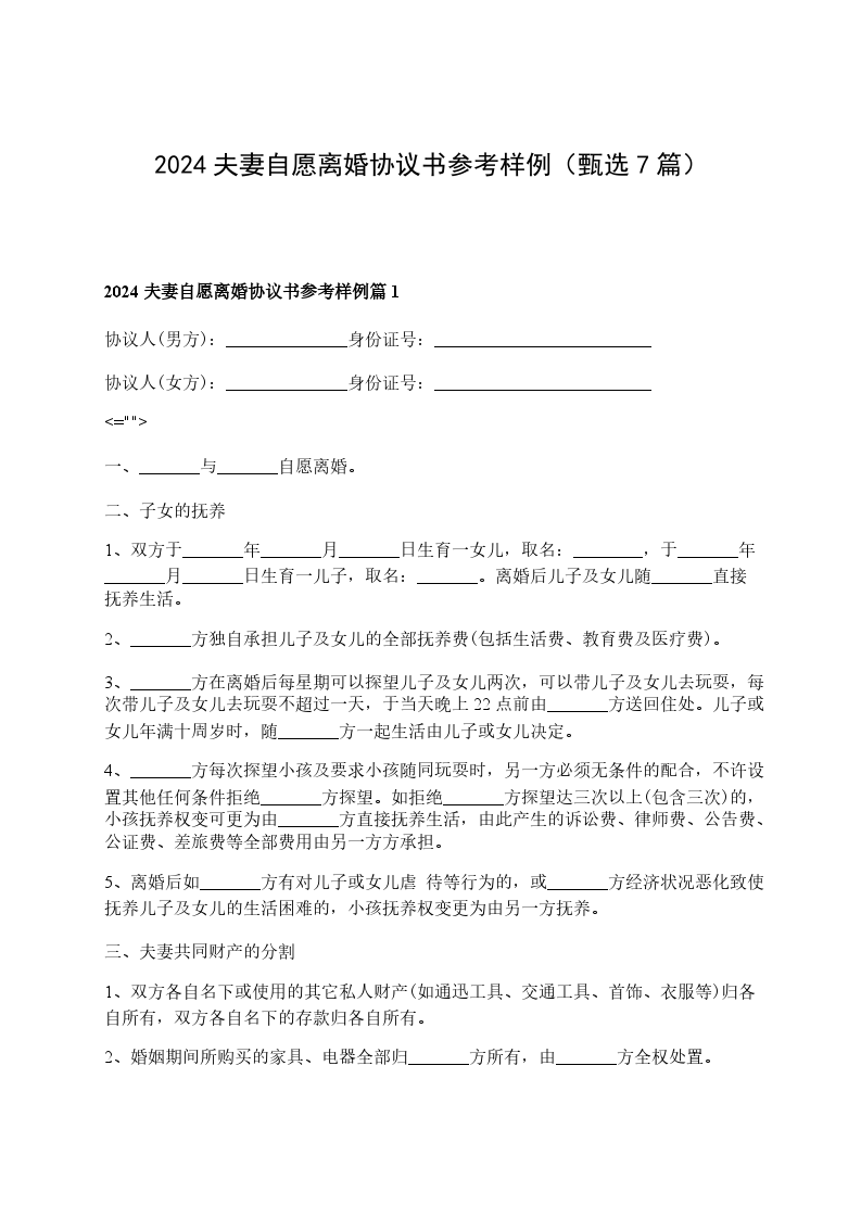 2024年夫妻自愿协议离婚书参考样例篇7