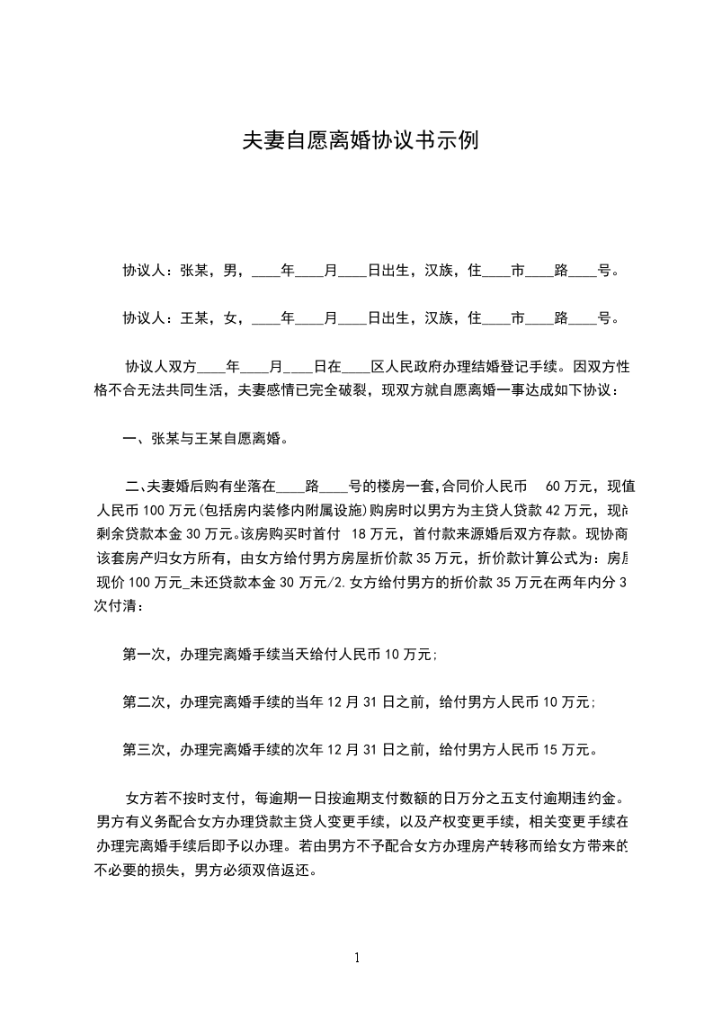 2、离婚协议手续办理后三天内,___方办理房产过户手续,如确实需要,___方应予配合,不得拖延。