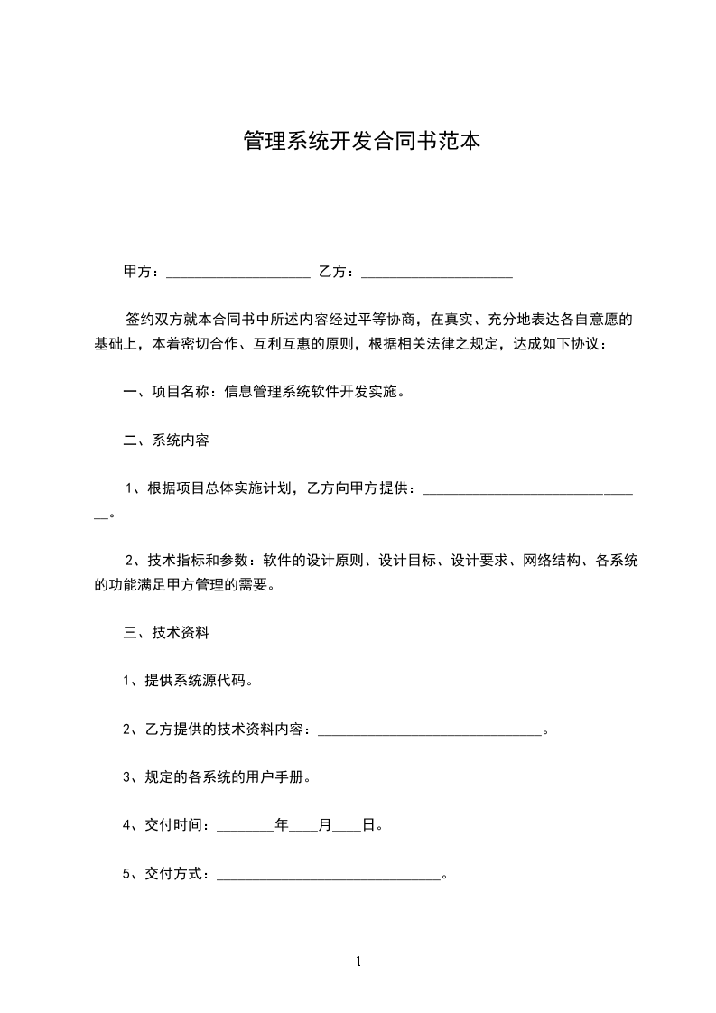 (1)软件的维护期为________年,日期自系统验收报告签字之日起计算。
