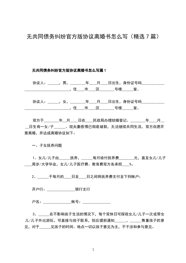 无共同债务纠纷官方版协议离婚范本参考样板篇7