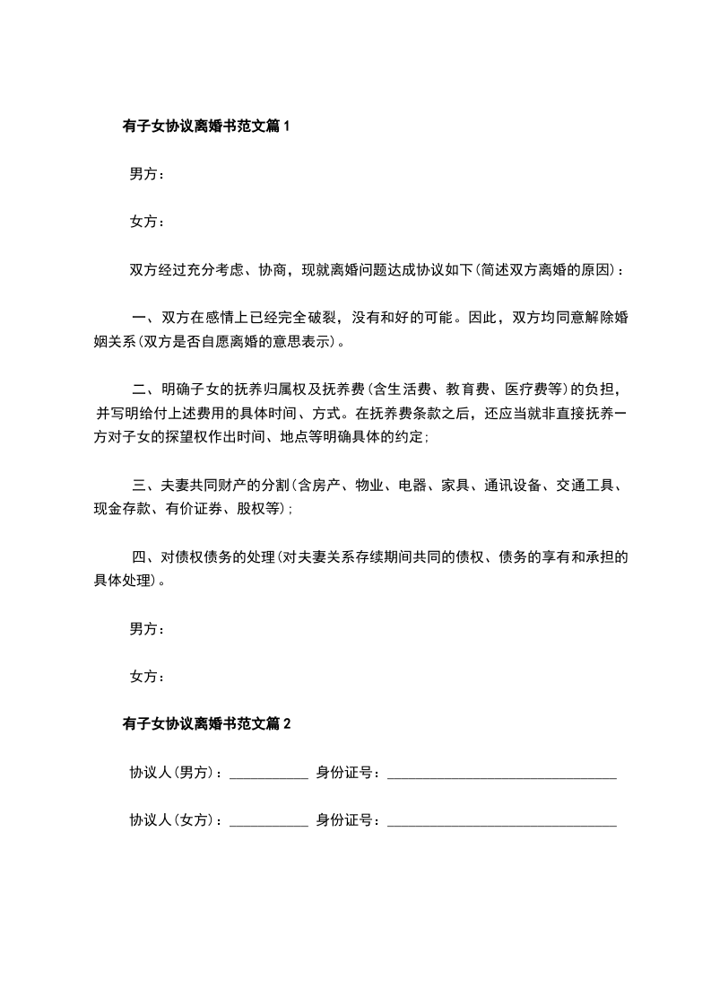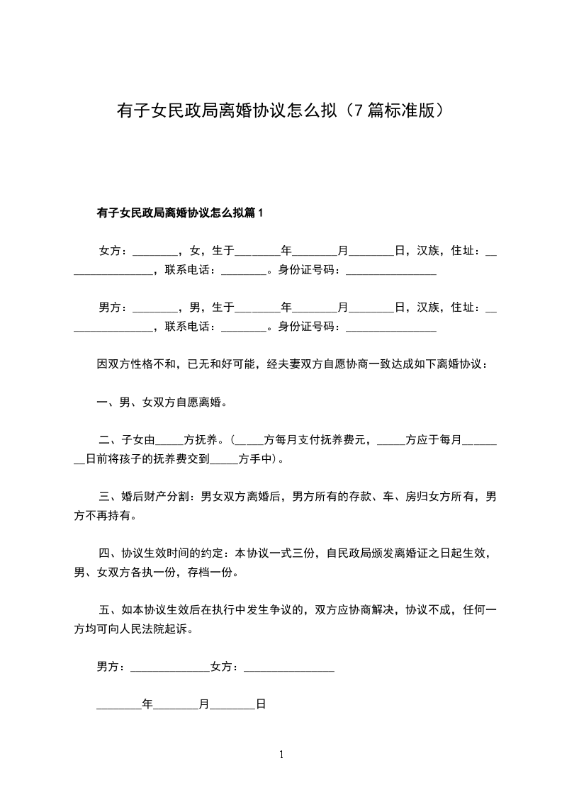 1、本协议一式三份,自婚姻登记机关颁发《离婚证》之日起生效,男、女双方各执一份,婚姻登记机关存档一份。