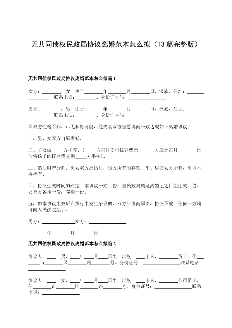 7.本协议一式三份,男女双方各持一份,婚姻登记机关存档一份。