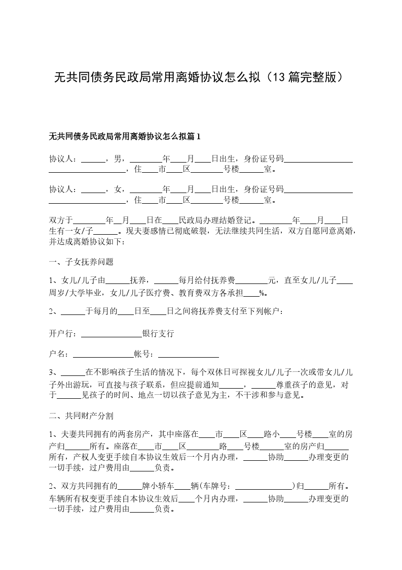 (1)男女双方确认在婚姻关系存续期间无共同债务。