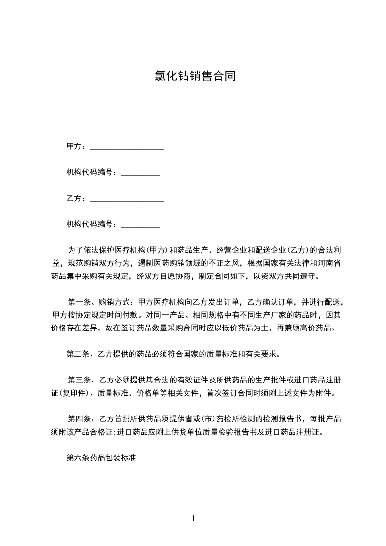 为了依法保护医疗机构(甲方)和药品生产、经营企业和配送企业(乙方)的合法利益,规范购销双方行为,遏制医药购销领域的不正之风,根据国家有关法律和河南省药品集中采购有关规定,经双方自愿协商,制定合同如下,以资双方共同遵守。