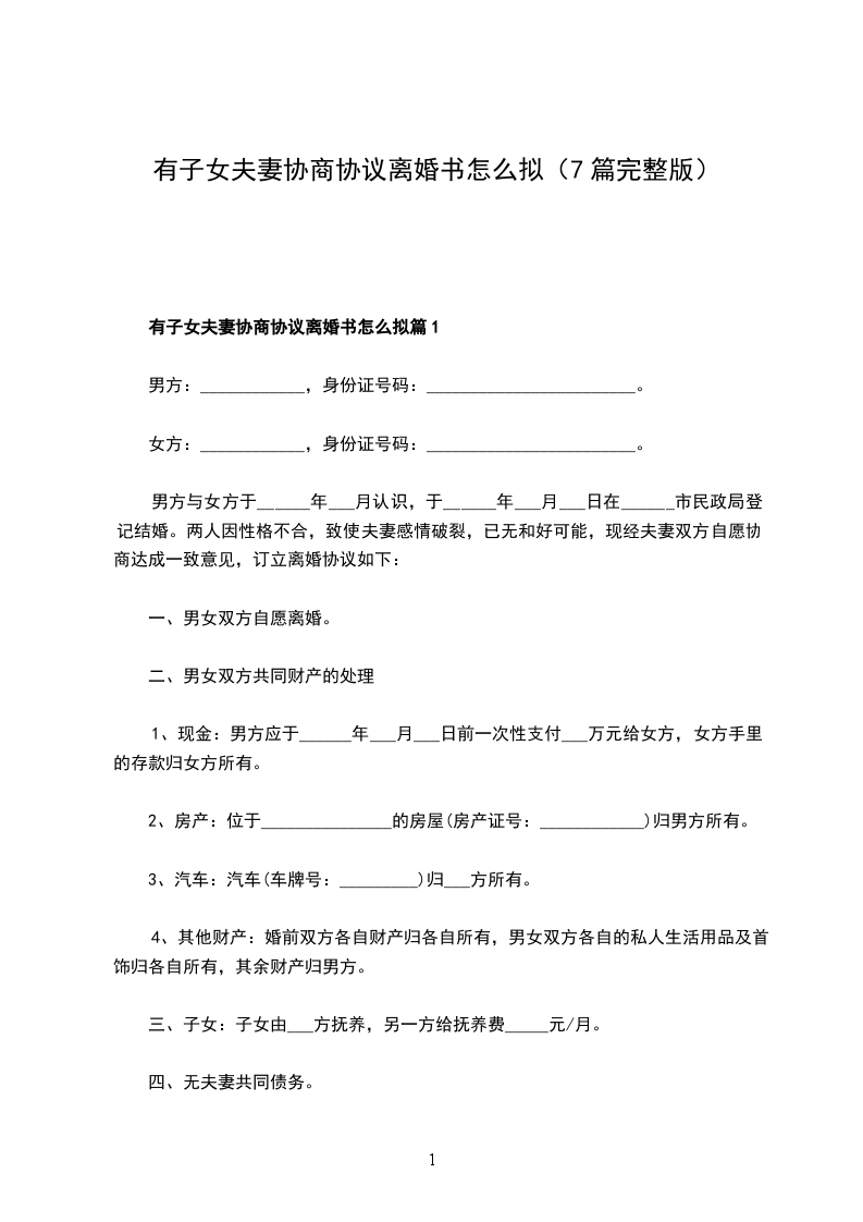 七、本协议一式_____份,男女双方各执_____份,自婚姻登记机关颁发《离婚证》之日生效。