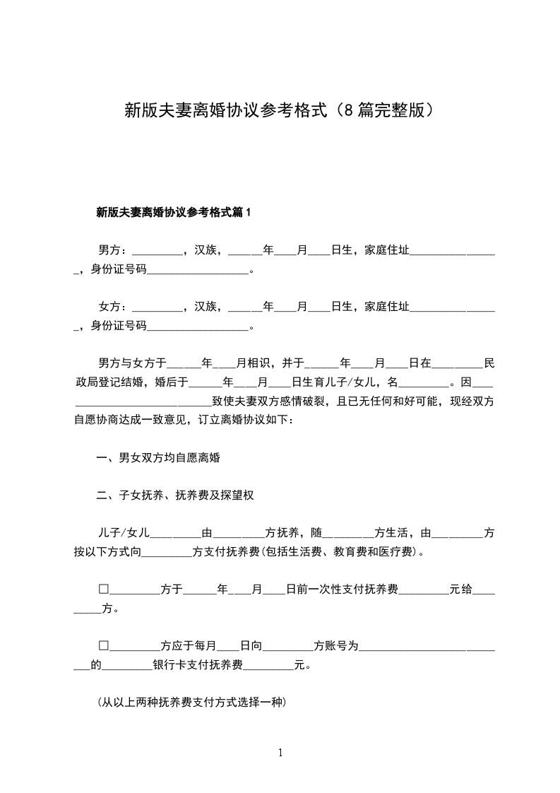 乙方:(男方):_______________,男,汉族,生于_____年__月__日,住________________________________