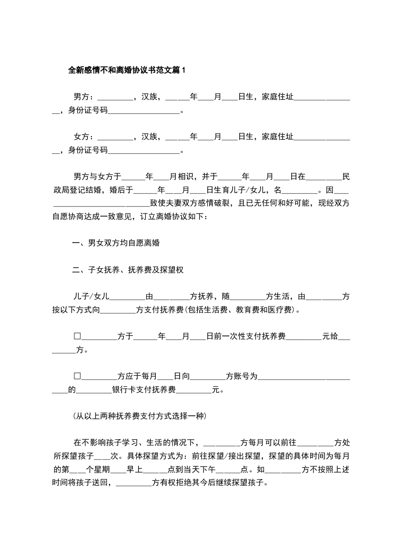 感情不和离婚协议书如何写篇3