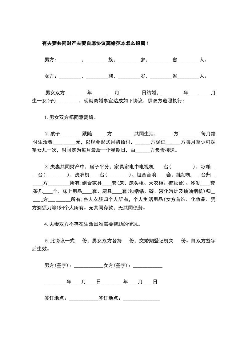 有夫妻共同财产夫妻自愿协议离婚范本怎么拟篇2