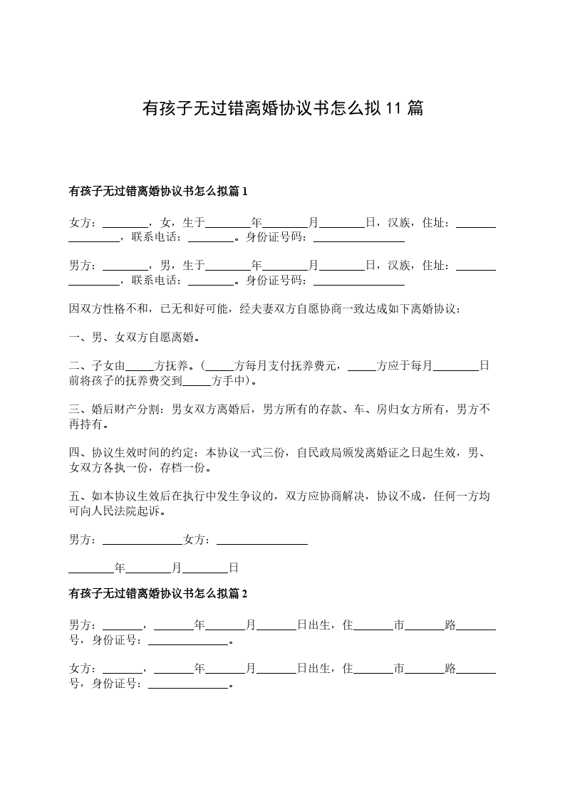 八、本协议一式三份,男、女双方各执一份,婚姻登记机关存档一份。