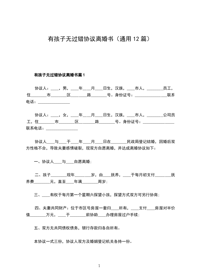(1) 方应当向有子女抚养权一方支付违约金__元。