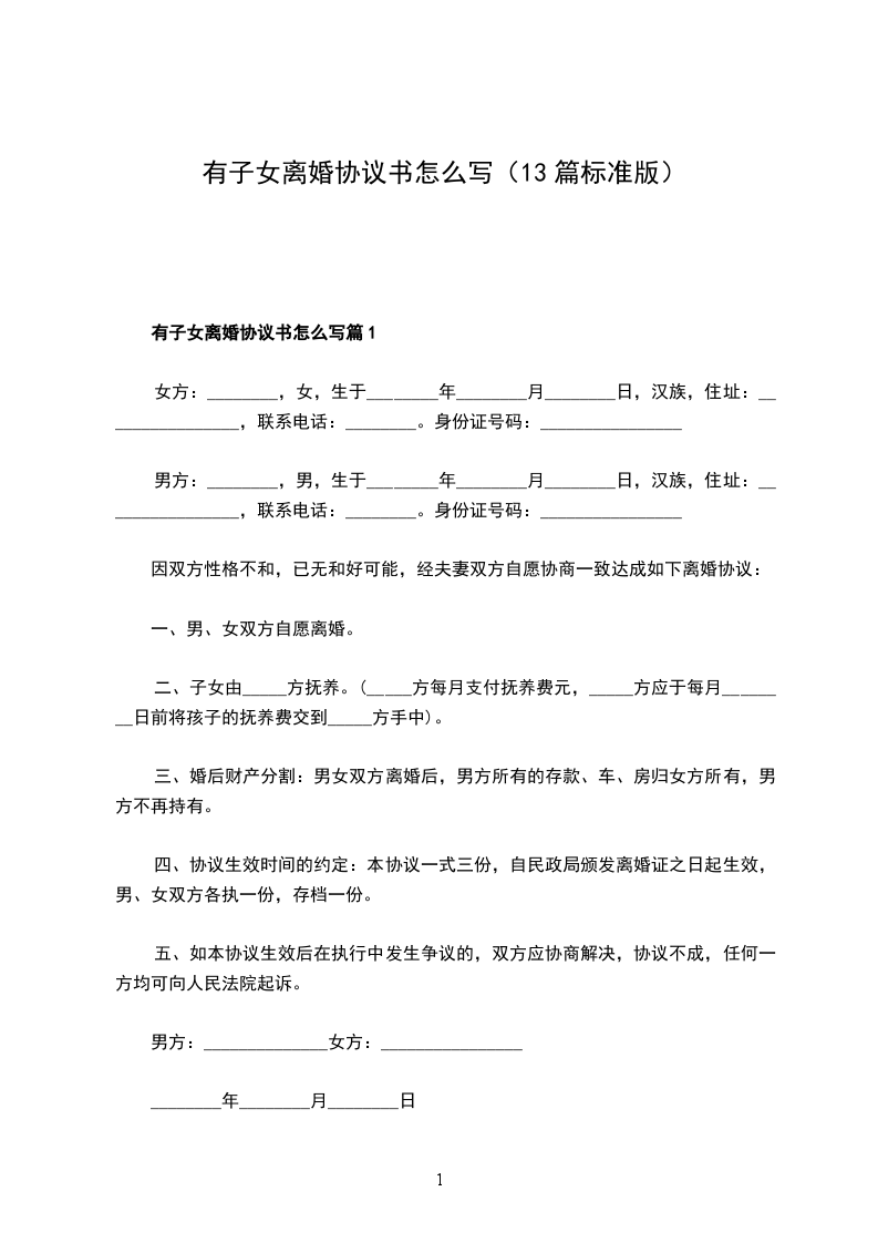 协议人(女方):__________,身份证号:____________________。