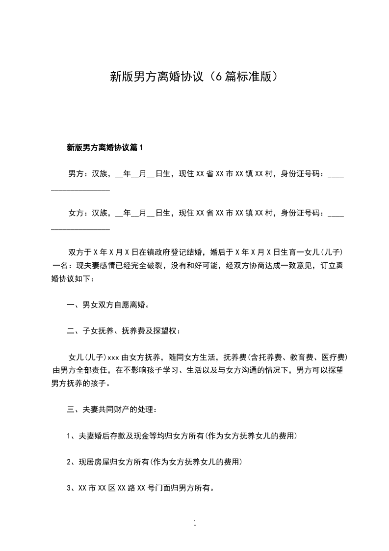 1. 第一房产位于XXXXX,现协商归女方所有;第二房产XXX,现协商归男方所有;