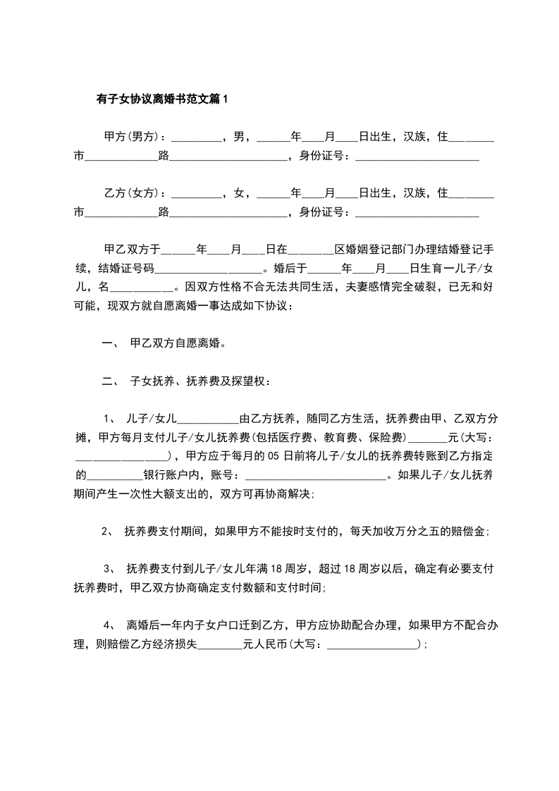 有子女男方离婚协议篇9