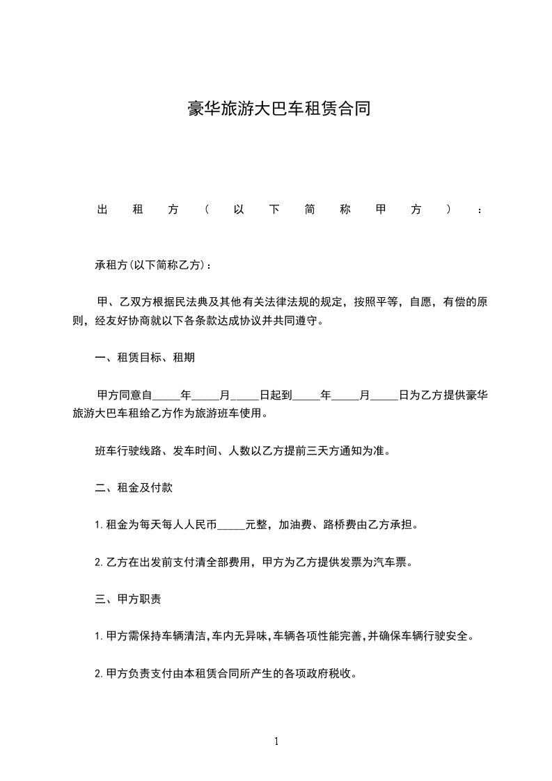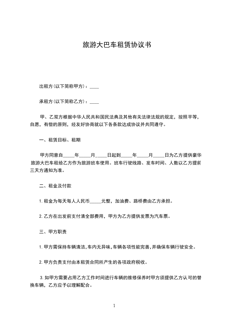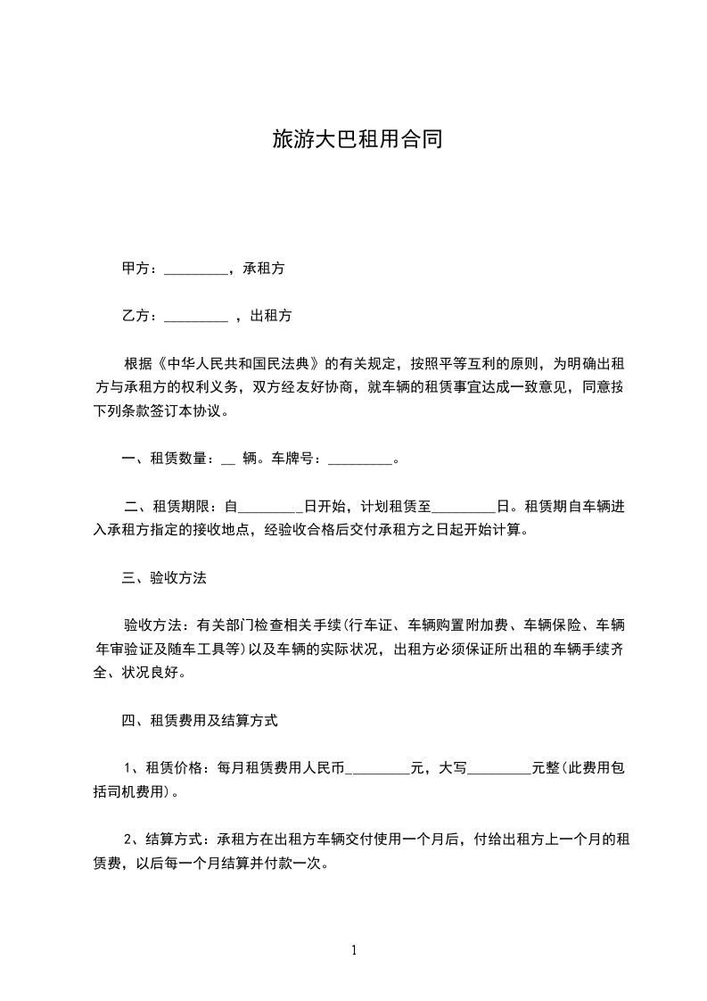 一、甲方租用乙方营业大客车___壹___辆,车号及车龄为:(车龄须在五年之内) 车号:_____车龄:________