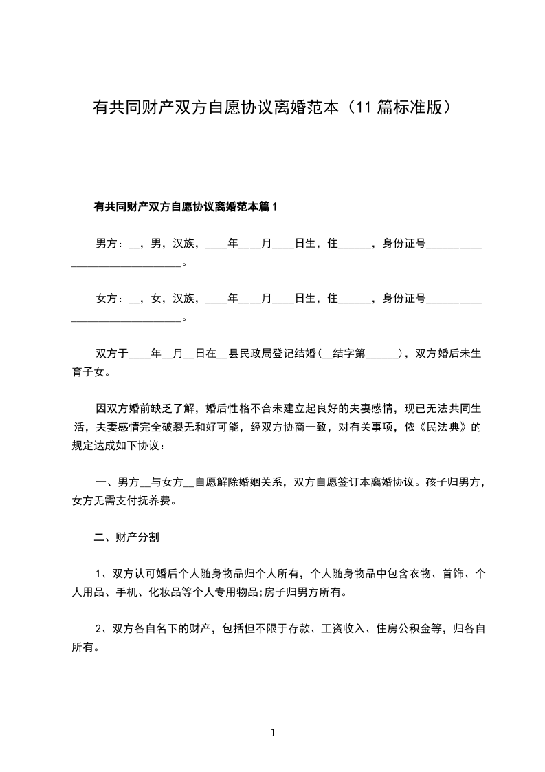 男方与女方于_________年_________月_________日在_________省登记结婚。双方夫妻感情确已破裂,已无和好可能,双方自愿离婚。现根据《民法典》的有关规定,经男女双方自愿协商,达成协议如下: