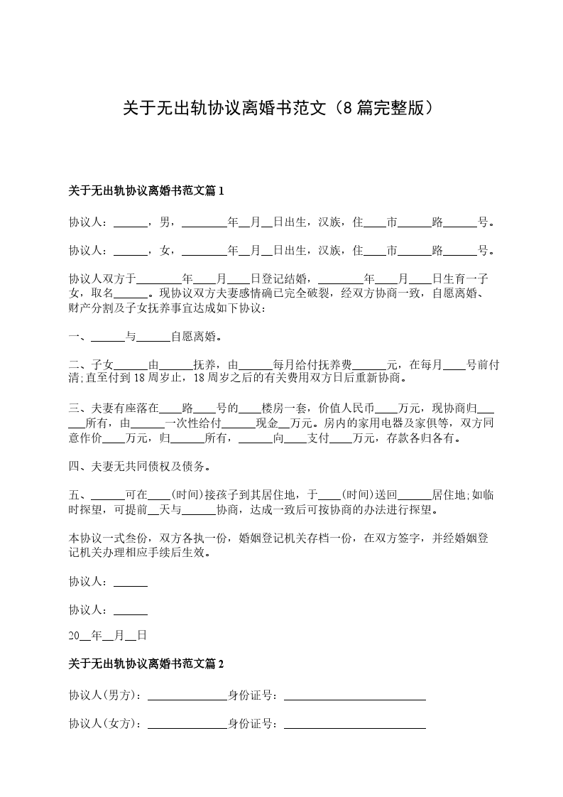 八、本协议一式三份,男、女双方各执一份,婚姻登记机关存档一份。
