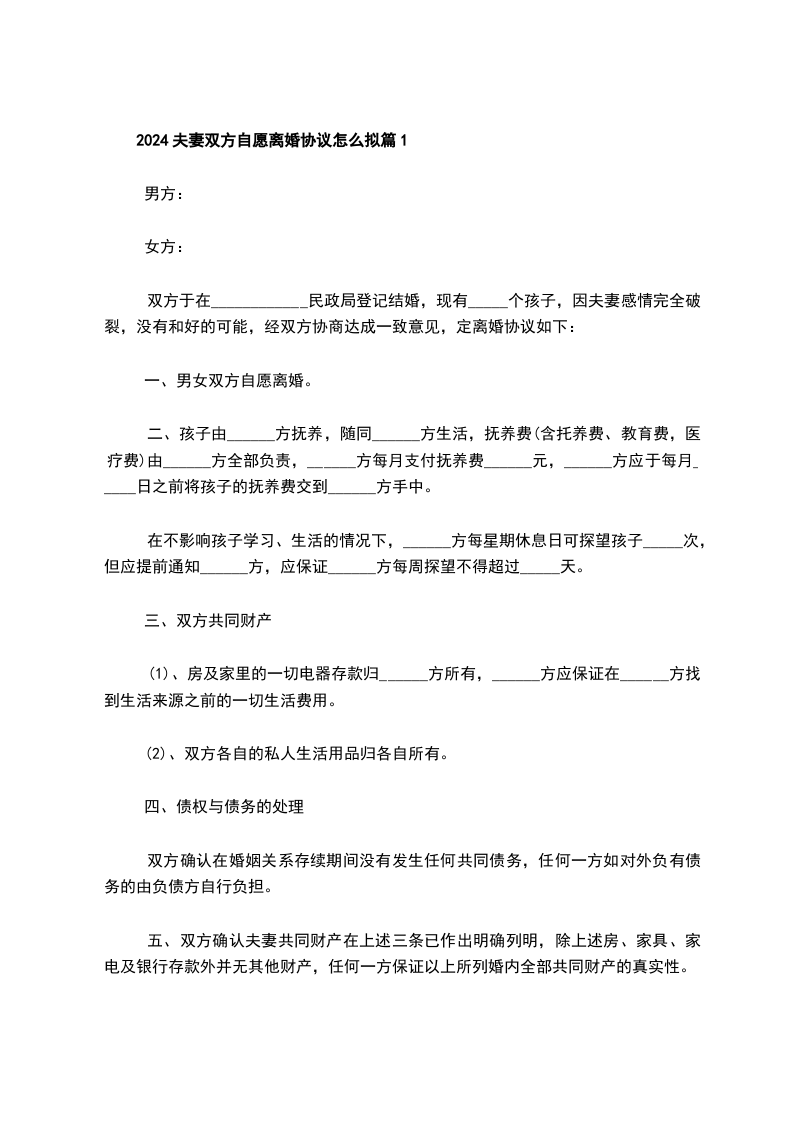 2024夫妻双方自愿离婚协议怎么拟篇2