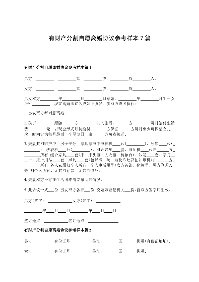 有财产分割自愿协议离婚书样本篇7