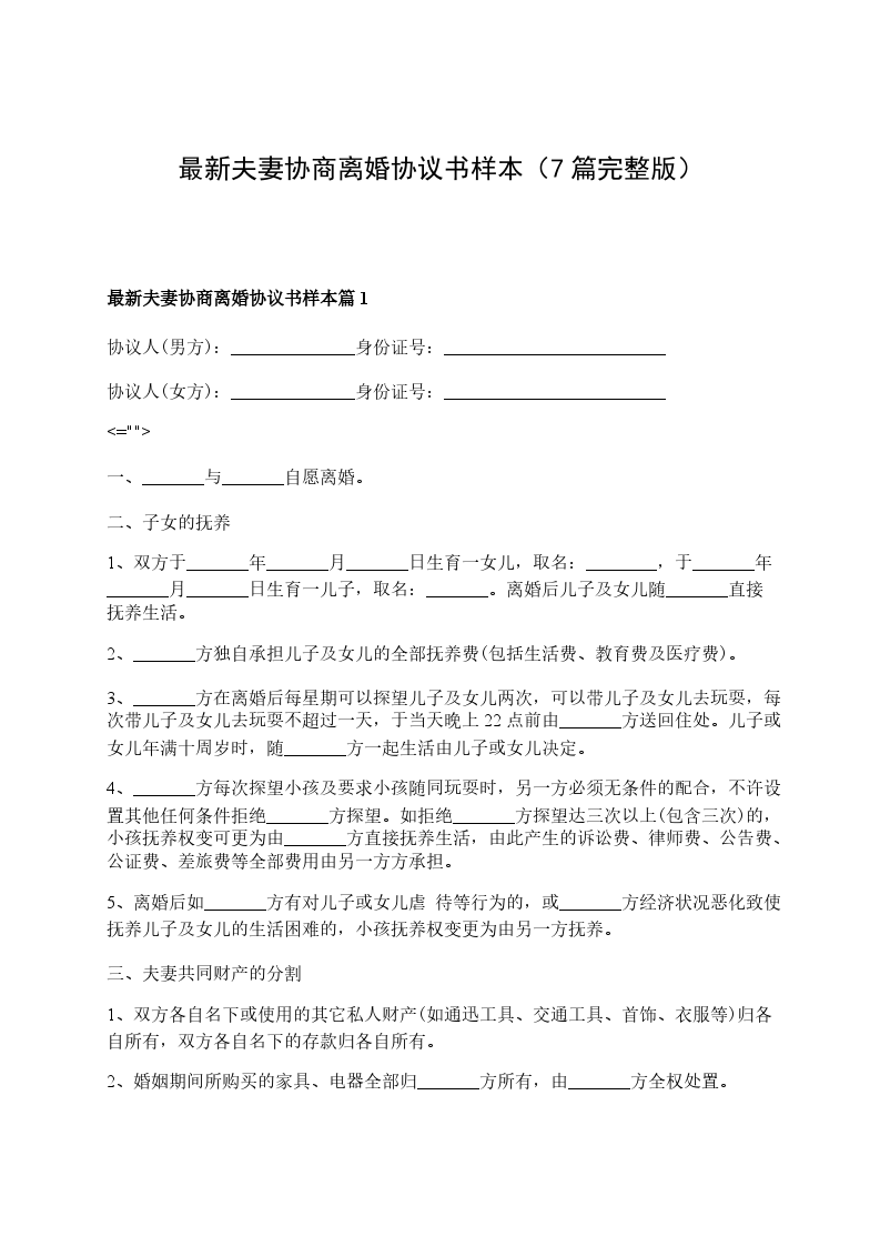 八、本协议一式三份,男、女双方各执一份,婚姻登记机关存档一份。