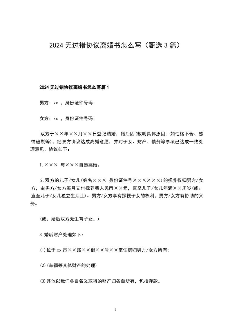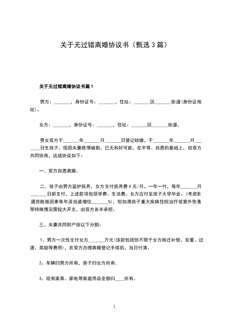 有婚后共同财产无过错协议离婚范本篇1