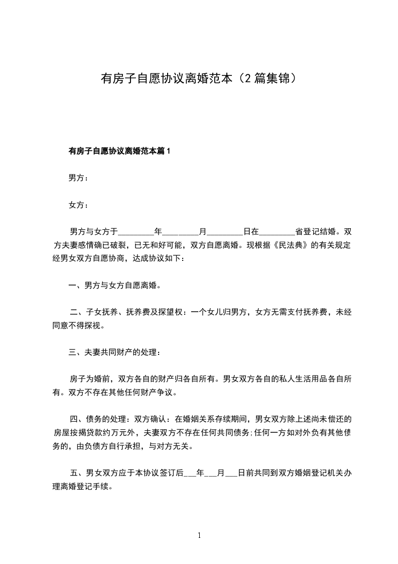新版自愿协议离婚范本样本篇1