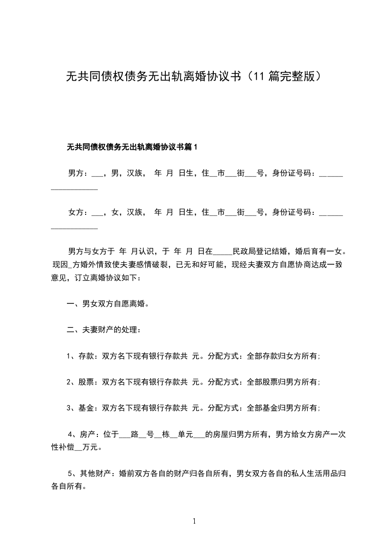 1、甲乙双方确认在婚姻关系存续期间无发生的共同债务。