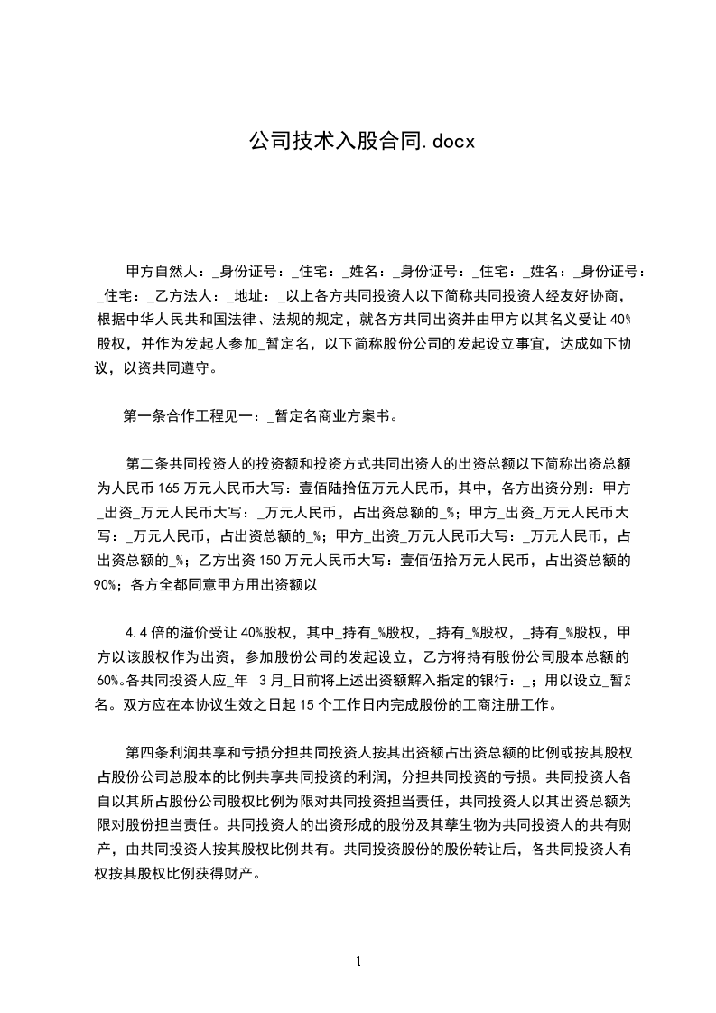 乙方以_____作为出资,出资额_____万元人民币,占公司注册资本的_____% ;