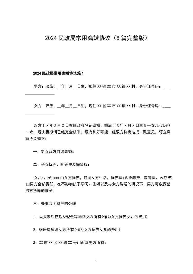 八、本协议一式三份,男、女双方各执一份,婚姻登记机关存档一份。