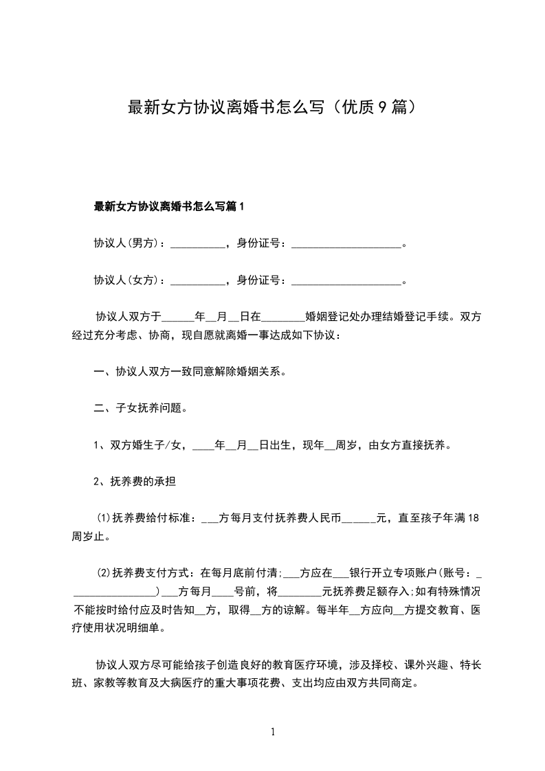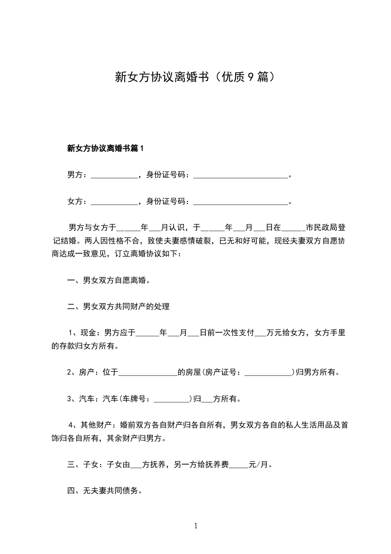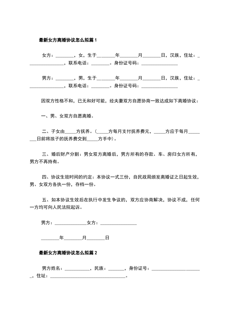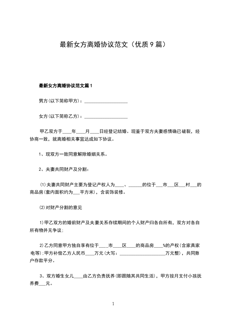 新版女方离婚协议篇9