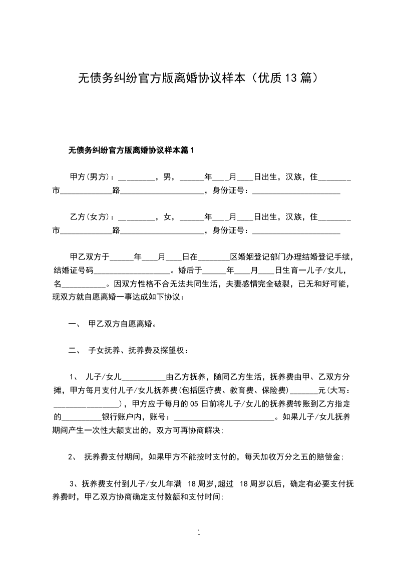 □双方确认在婚姻关系存续期间没有发生任何共同债务,任何一方如对外负有债务的,由负债方自行承担。