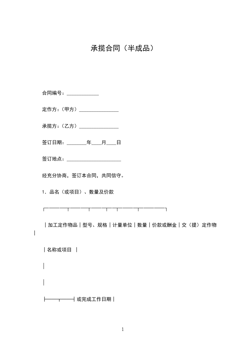 │加工定作物品│型号、规格│计量单位│数量│价款或酬金│交(提)定作物│