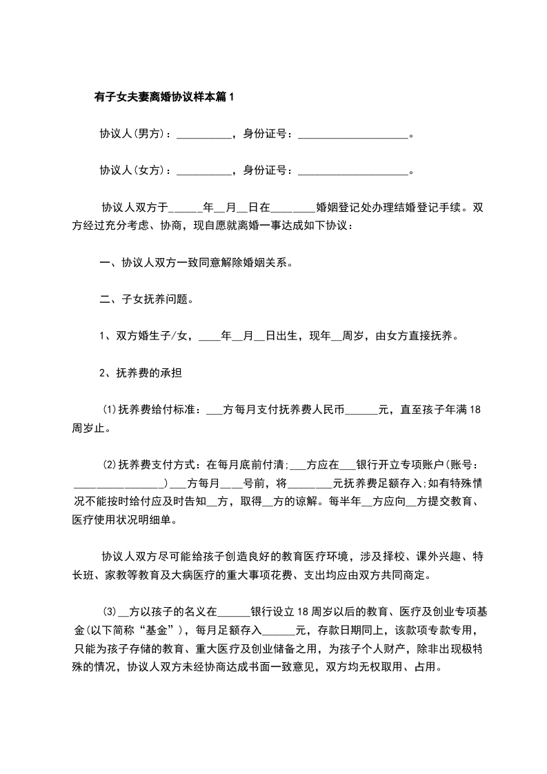 有子女夫妻离婚协议样本篇1