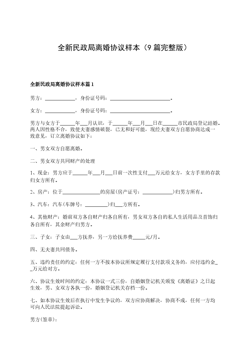 五、本协议一式三份,男女双方各持一份,存婚姻登记档案一份。