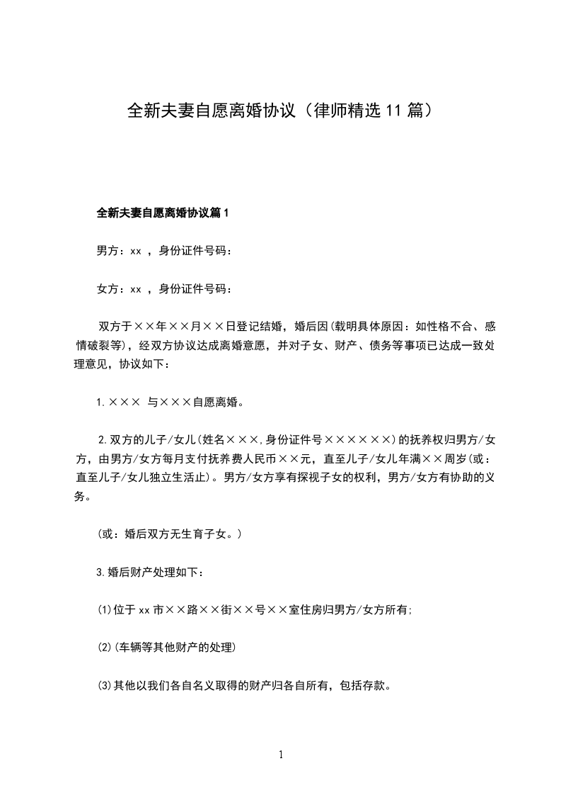 一、________与________自愿离婚,今后各自婚姻互不干涉。