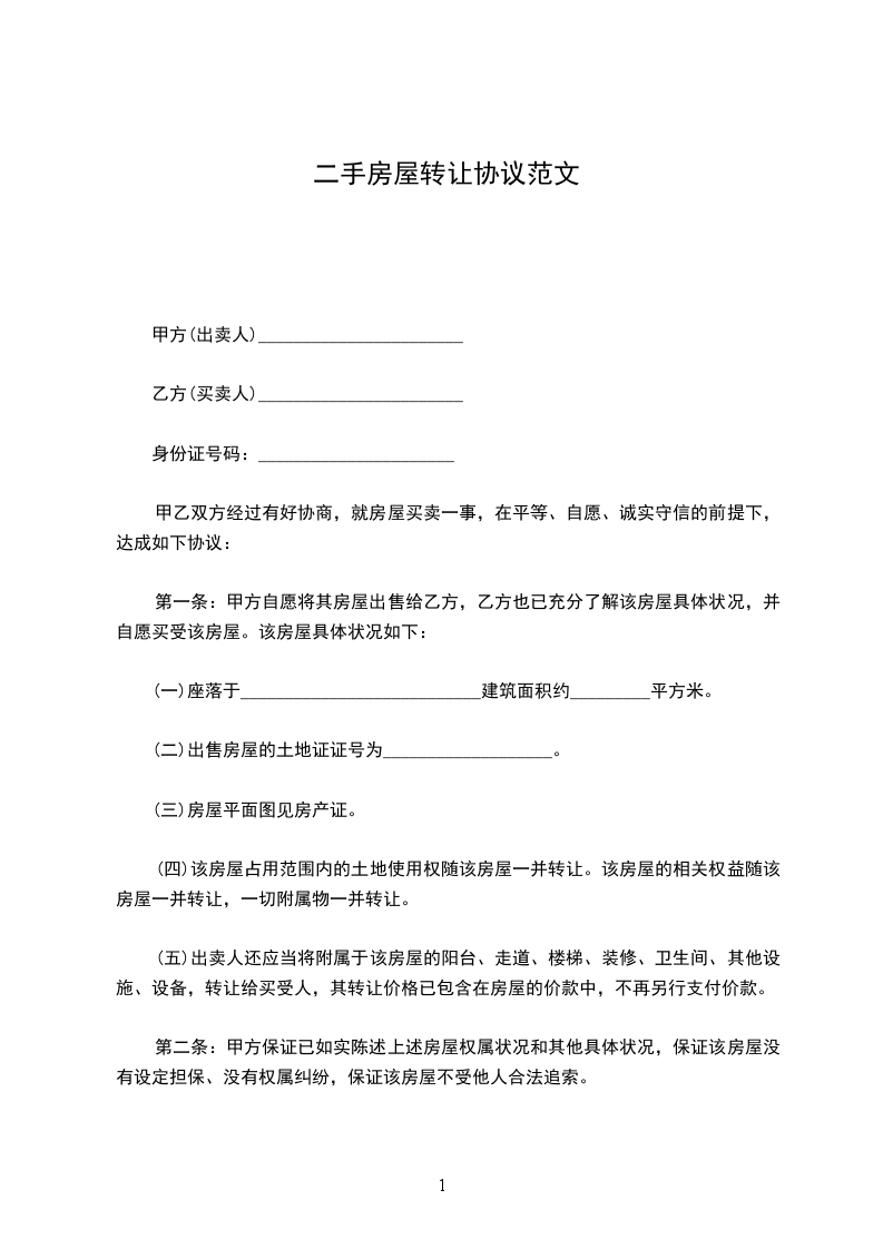 二、甲乙双方议定上述房屋转让价为币______________整(大写:_____________________整),按套计算,包括公共维修金、房屋现有设施等所有费用,甲方不得再以任何形式追加。