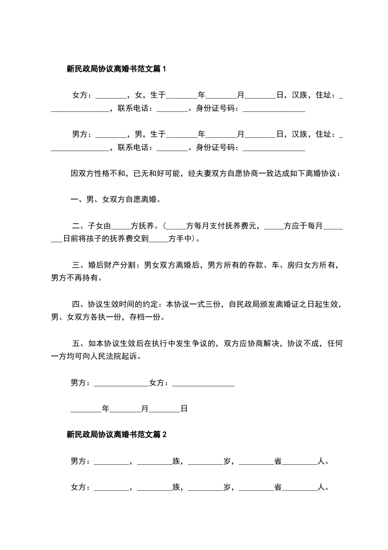 2、本协议一式三份,男女双方各执一份,婚姻登记机关存档一份。