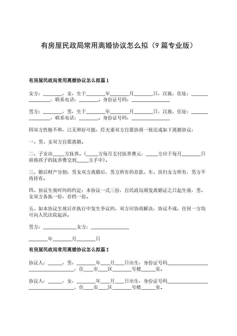 九、本协议一式三份,自婚姻登记处颁发离婚证之日起生效,男、女双方各执一份,婚姻登记机关存档一份。