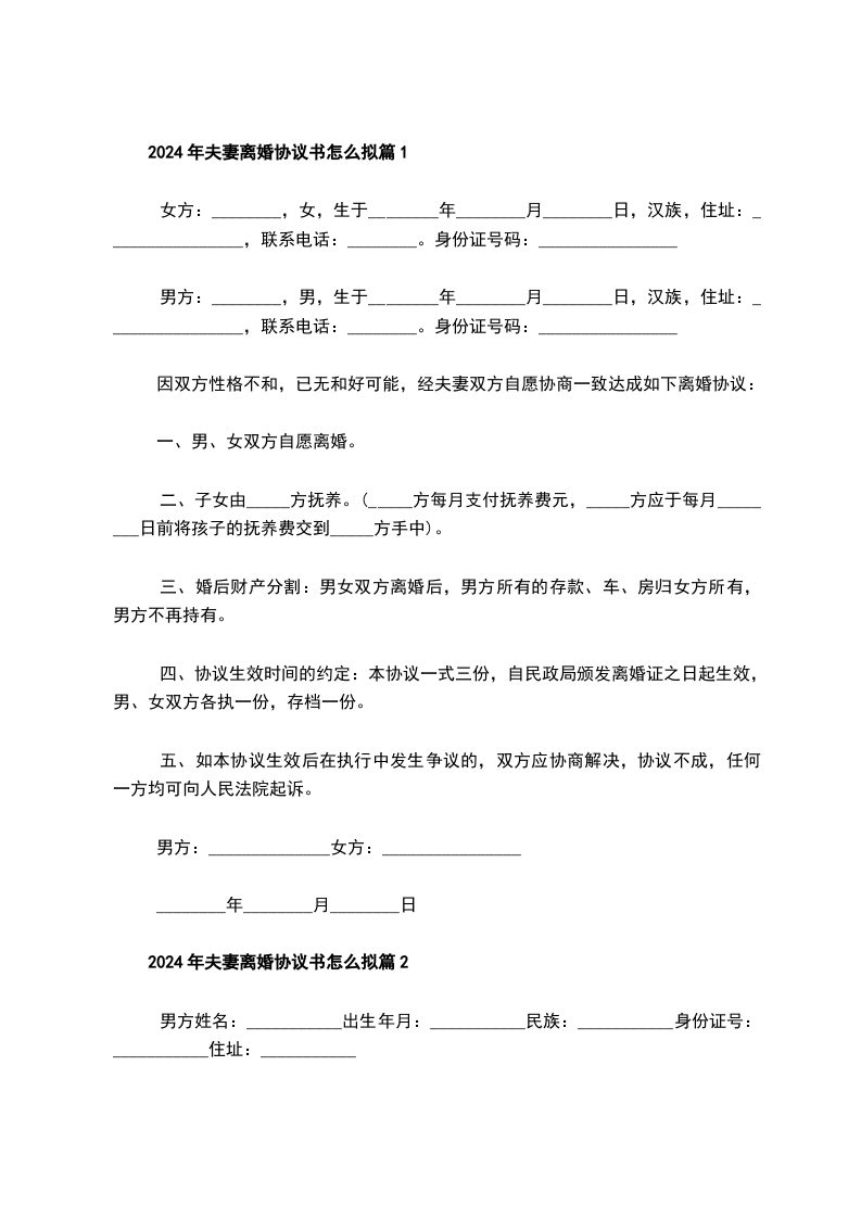 关于夫妻协议离婚范本怎么拟篇2