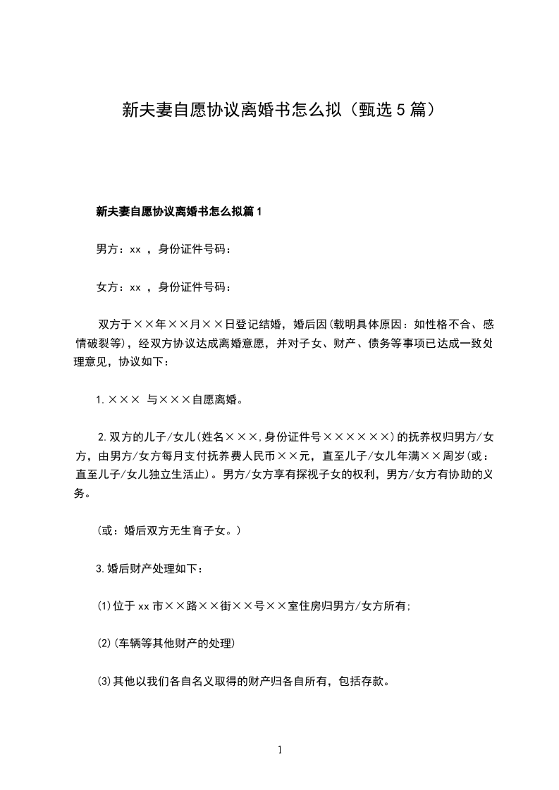 关于夫妻协议离婚范本怎么拟篇5