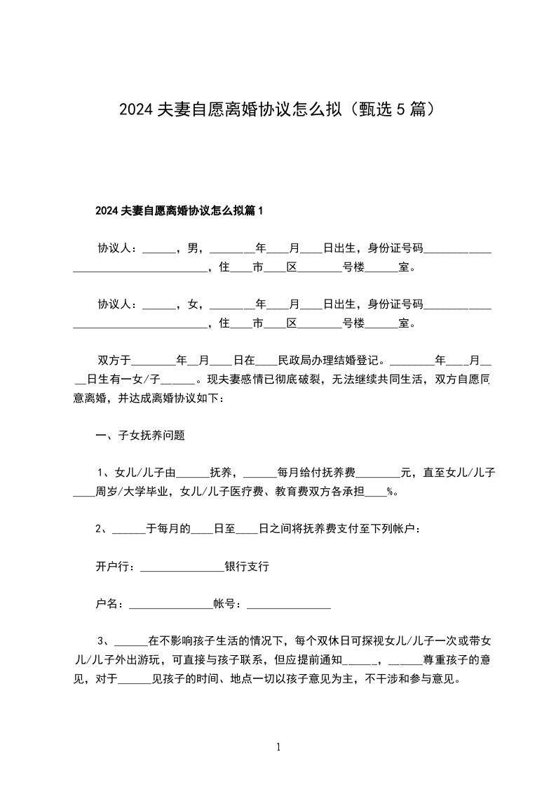 关于夫妻协议离婚范本怎么拟篇1