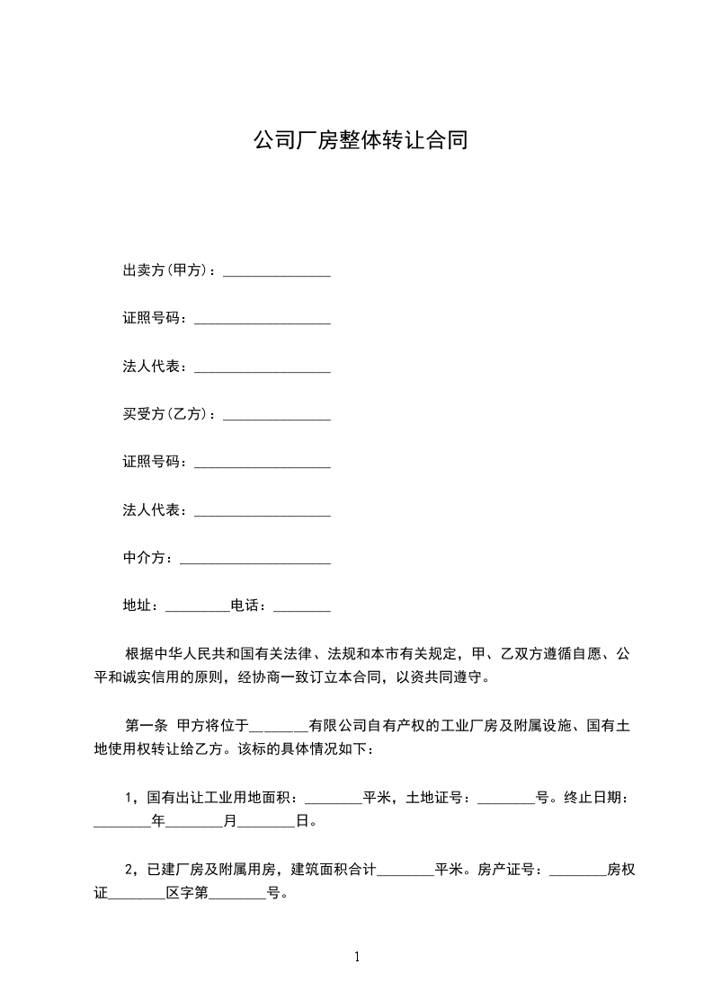 甲方出租给乙方的厂房座落在______________,租赁建筑面积为_______平方米。厂房类型为_______,_______结构。