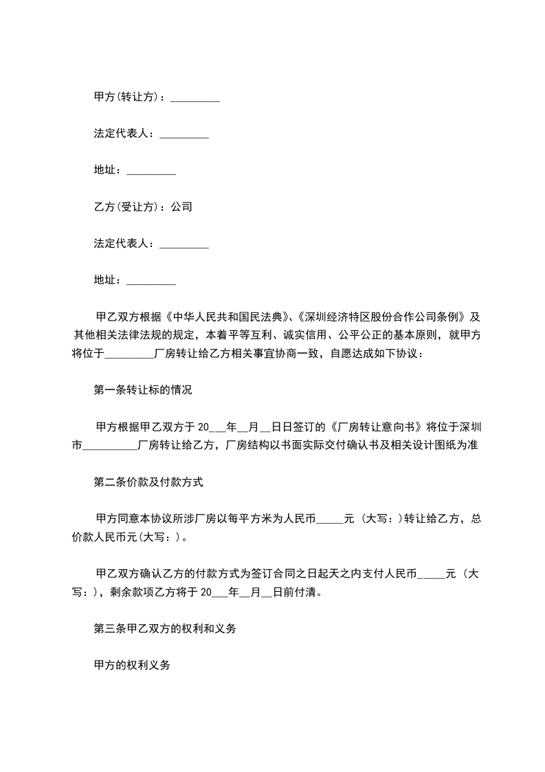 1.乙方在租赁期间,如将该厂房转租,需事先征得甲方的书面同意,如果擅自中途转租转让,则甲方不再退还租金和保证金。