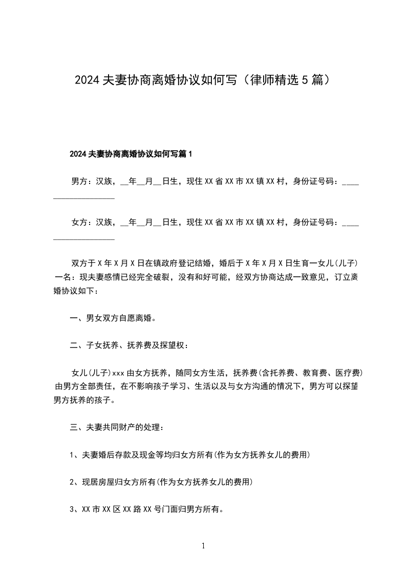 女方:汉族,__年__月__日生,现住XX省XX市XX镇XX村,身份证号码:___________________