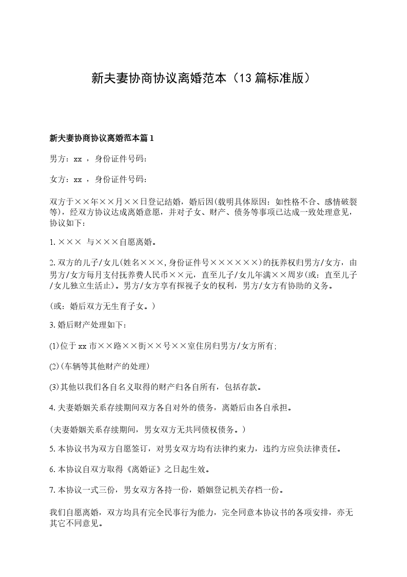 7.本协议一式三份,男女双方各持一份,婚姻登记机关存档一份。