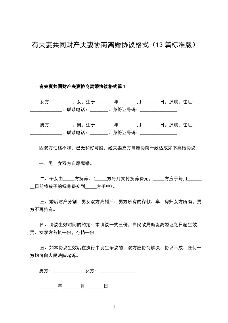 六、本协议书一式三份,男女双方各执一份,婚姻登记机关存档一份。