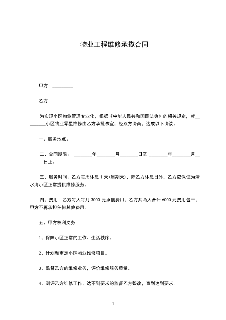 (一)未经甲方书面同意,乙方不得将本合同约定的维修项目主要工作转包给任何第三方。
