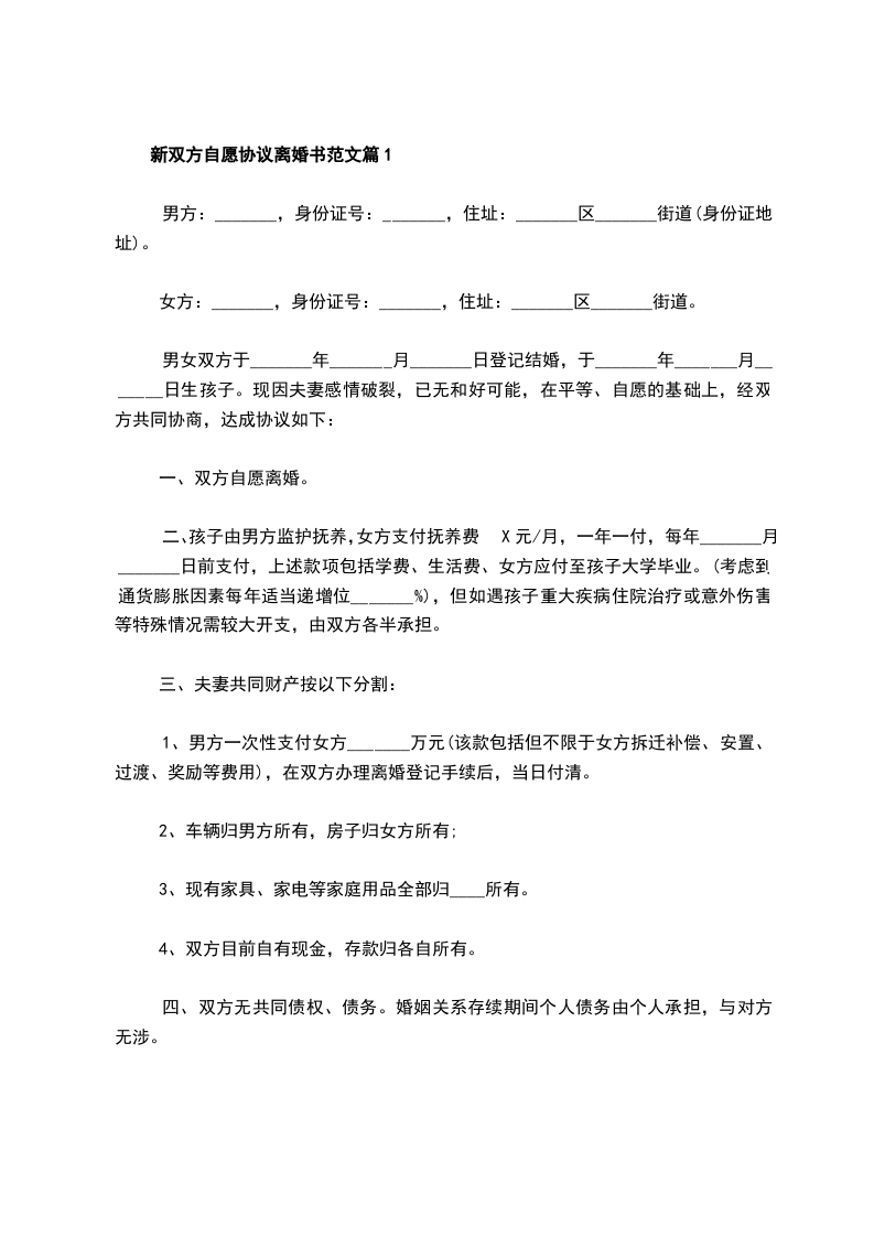 新双方自愿协议离婚书范文篇10