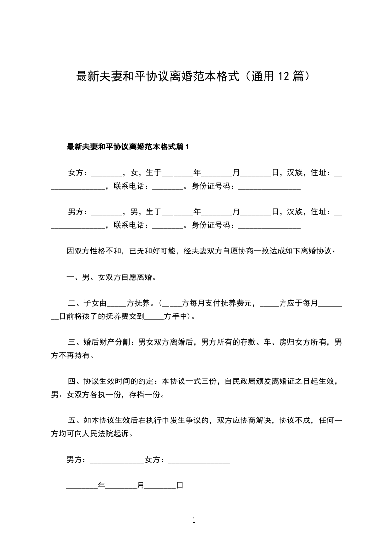 八、本协议一式三份,男、女双方各执一份,婚姻登记机关存档一份。