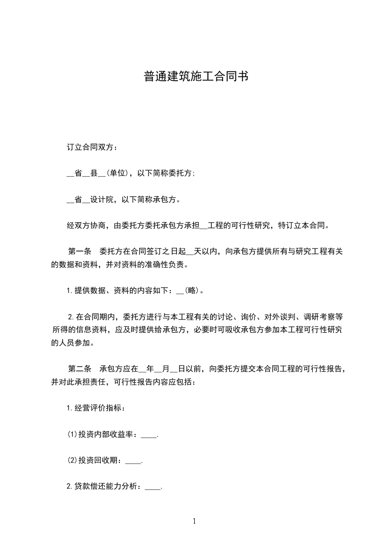 1.本工程的可行性研究费为人民币____元整。于合同生效之日,委托方应向承包方付给上述金额的百分之二十。下余金额于合同期满时全部付清。