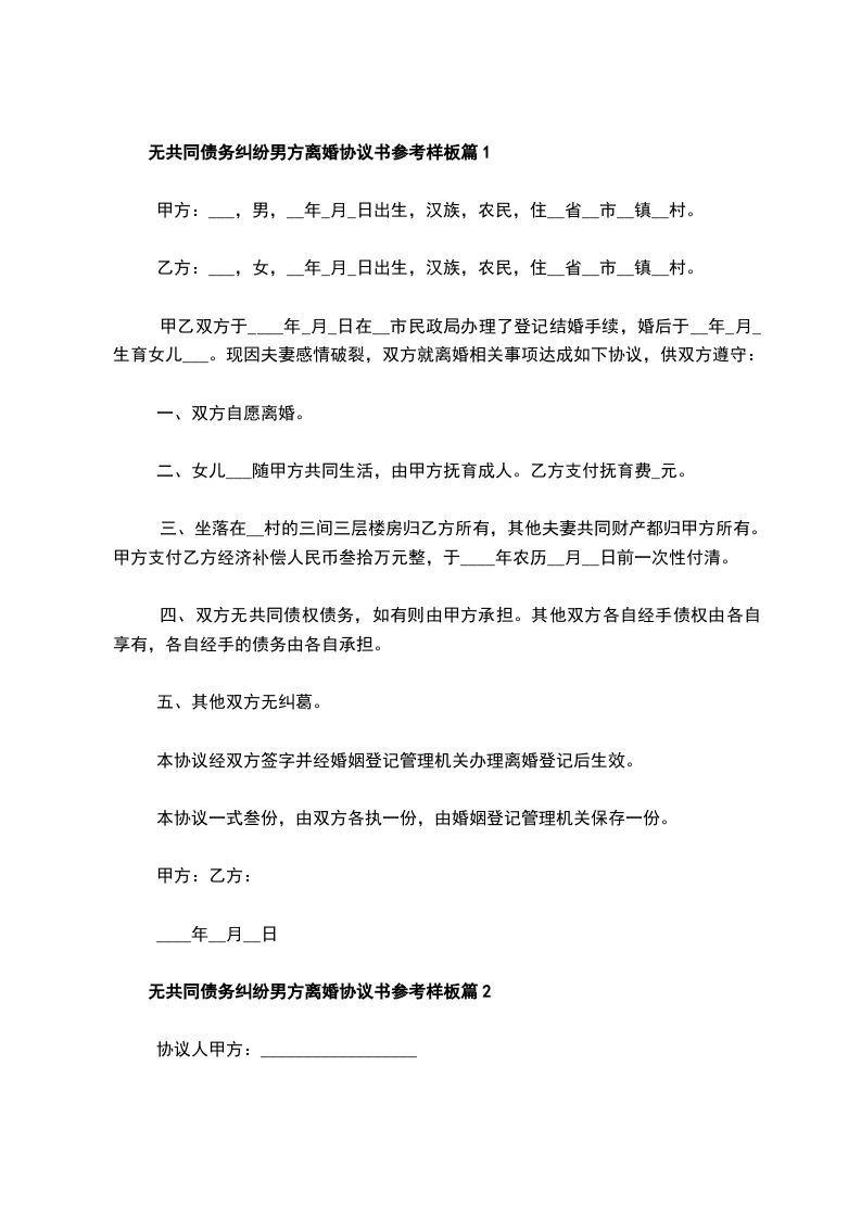 五、双方确认在婚姻关系存续期间没有发生任何共同债务,任何一方如对外负有债务的,由负债方自行承担。